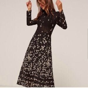 floral, romantic, date night, lace, long sleeve, sleeves, high neck, boho, bohemain, girly, girlycore, preppy, festival, wedding guest, garden party, cocktail