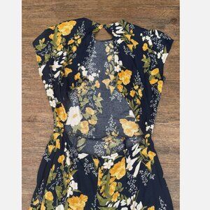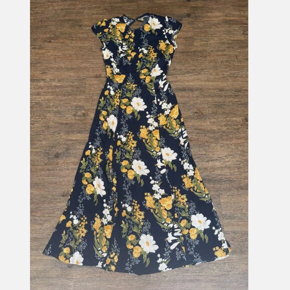 Reformation Navy and Yellow Floral Midi Dress