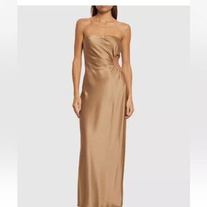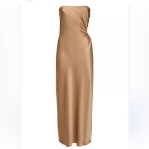 Reformation Nevaeh Satin Dress in Gold/Taupe Large NEW $298
