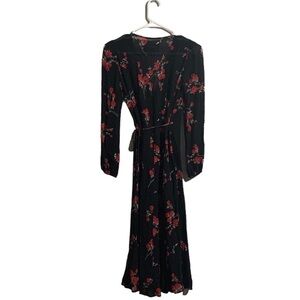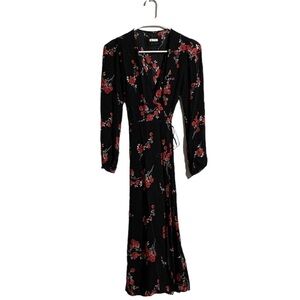 Reformation Nicole Floral Black Wrap Midi Dress Size: XS