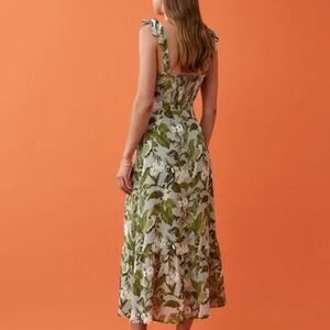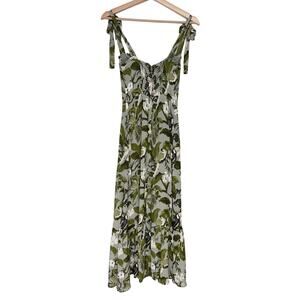 Reformation Nikita Dress Tropical Green Floral Midi | SZ 0