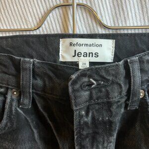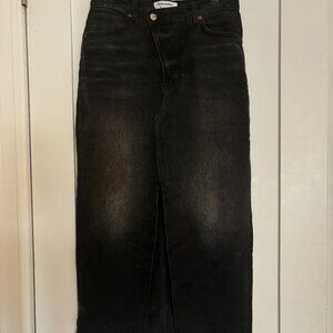 Reformation Nila Long Denim Skirt in Black Size 28.