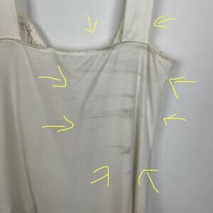 Good used condition. Size large. Has staining on the front and back(see photos) can be washed to remove the staining, no rips or tears. No snap closure. E8