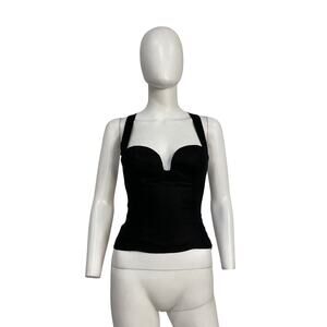 Reformation 'Nola' Black Linen Top Size 2: lightweight, non-stretch linen weave, structured u notch and lightly padded cups, crisscross ties at back, sweetheart neckline, lined, adjustable shoulder straps.