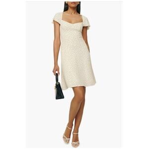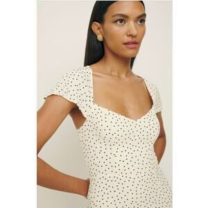 Reformation Novia Polka Dot Flutter Sleeve Dress in Salt and Pepper, Size 10 NEW