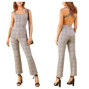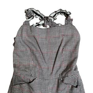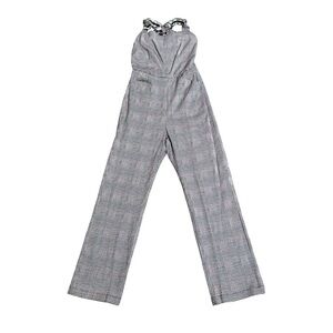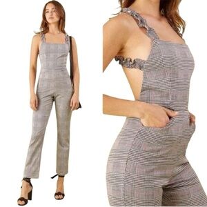 Reformation Oakland Houndstooth Ruffle Strap Tweed Jumpsuit Size 4 Black White