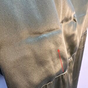 There is a VERY subtle flattening of the silk texture/sheen in one spot on the right side of the dress under the bust. Every time I have looked for it — I've had to hunt for it. Because it will fall in the shadow / underboob area (!) I genuinely don't think it will be visible when it's being worn — as it is it's only visible at exactly the right angle. It was super hard to photograph but the last 5 pictures show the same area of the dress from different angles so you can see if this is something you're ok with. Otherwise a stunning dress!