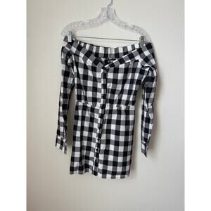 Reformation Off The Shoulder Bromley Check Gingham Mini Dress Size 2