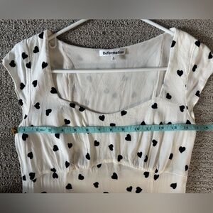 Size 8 reformation dress in great condition. Measurements/material/washing instructions pictured.