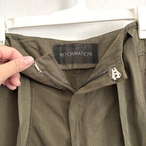 Reformation Olive Green Tapered Pants with Sash Belt Women’s Size Medium