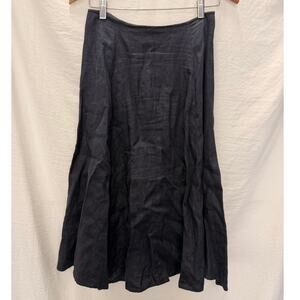 Reformation Orzo Linen MIDI High Waist Skirt in Black Corvette 2 Button Front
