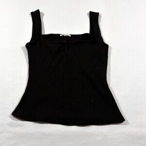 Reformation Ossie Black Tank Womens Ribbed Knit Square Neck Sleeveless Top S USA