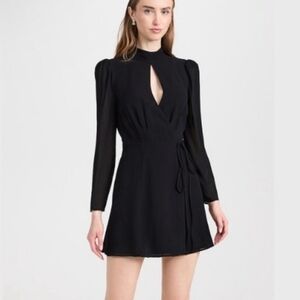 Reformation Ottessa Long Sleeve Mini Wrap Dress in Black Small