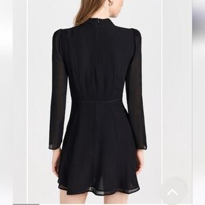 How classic. Shop the Ottessa Dress from Reformation, a long sleeve, mini, mock neck dress. It has a fit and flare silhouette. Wrap style with open area at the chest.