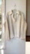 Reformation Otto wool polo sweater in gossamer, a cream shade, made from regenerative wool with long sleeves, collar and side slits, relaxed oversized fit, and v-neckline, women’s size small.