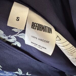 Reformation Oversized Floral Navy Blue Maxi Short Sleeves Wrap Cocktail Dress S