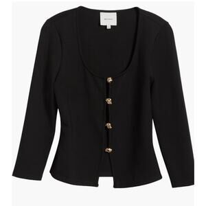 Designed to be daring, this knit top is sculpted with princess seaming for a curve-skimming fit and fastens with gleaming buttons that strategically flaunt hints of skin.