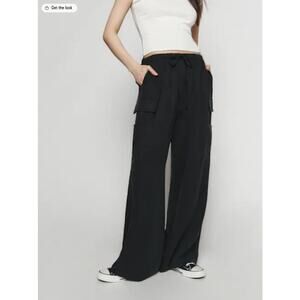 Reformation Pants Women Small Ethan Twill Wide Leg Cargo Black Quiet Luxury Chic
