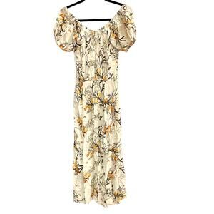 Cream/ivory dress with gold/orange/yellow floral print throughout