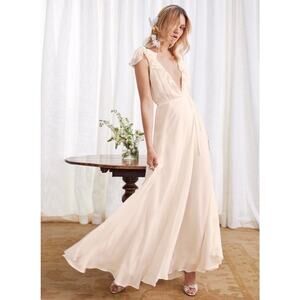 Reformation Peppermint Dress Ivory White Wedding Bridal Maxi Large V-Neck