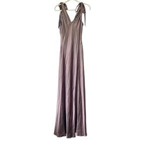 Reformation Pernille Silk Dress in Magnetic. Size L / Large. Features plunging v-neck, adjustable tie straps, v back, pullover styling, long maxi floor length. 100% silk. Style 1312835MGN. Brand new, never worn, NWT / New with tags.