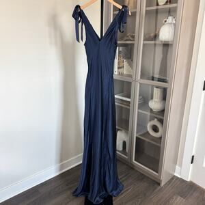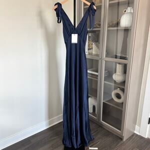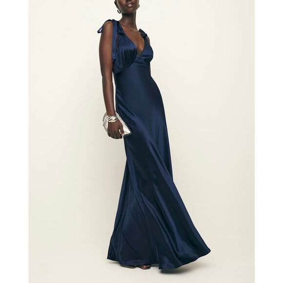 Reformation Pernille Silk Maxi Dress XS NEW Navy Blue Sleeveless V-Cut Tie NWT
