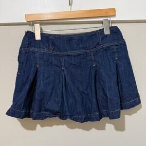 Reformation Petal Denim Mini Skort in Liffey. Women's Size 28 / Medium. Features micro mini length, belt loops, interior shorts, pleating, mid rise, dark blue denim wash. 100% regeneratively grown cotton. Great used condition, no notable flaws. Retail $168. Sold out online.