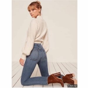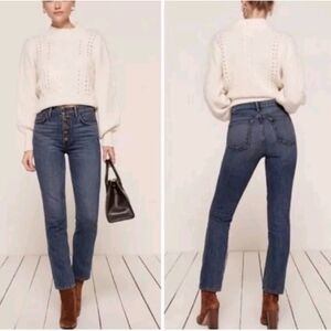 Reformation Petite Mid Rise Button Fly Jeans Baltic Wash Blue Women's Size 24