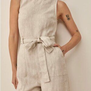 Reformation Petites Naomi Linen Jumpsuit (Oatmeal) - Size 6P
