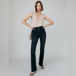 Reformation Peyton Zip Ultra High Rise Bootcut Jeans Solana Washed Black 25