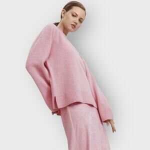 Soft pink crew neck sweater. Cozy and stylish. Perfect for layering.
