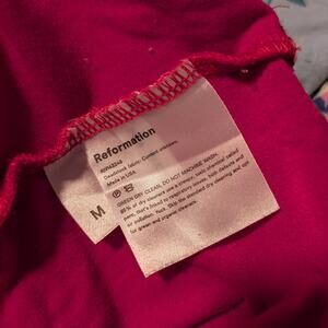 Step out in style with this stunning pink mini dress from Reformation. Designed with a fitted silhouette and tank top sleeves, this dress offers a chic and modern look. The vibrant color and sleek design make it a perfect choice for any occasion.