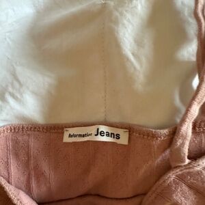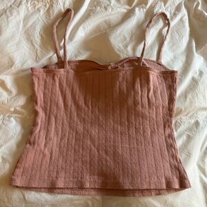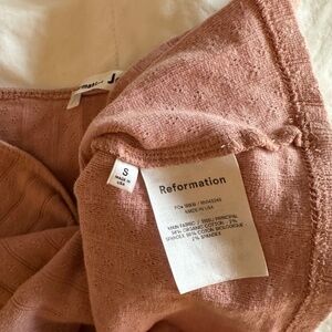 Stylish pink tank top by Reformation. Features a textured design with thin straps. Perfect for casual wear.