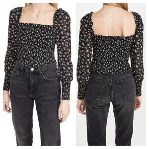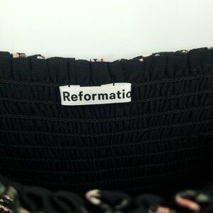 Reformation Pinto Smocked Floral Print Top Sz 1X Black Freesia
