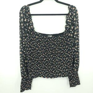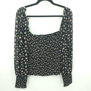 Reformation Pinto Smocked Floral Print Top Sz 1X Black Freesia, GUC with light wear, no flaws.