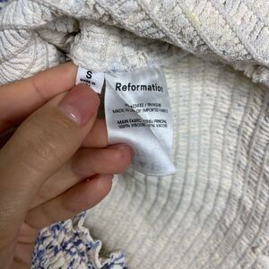 Reformation Pinto Top White Blue Blouse Long Sleeve Floral Size S