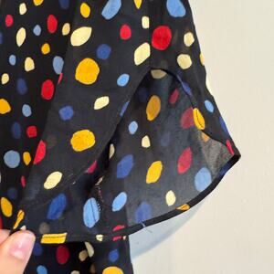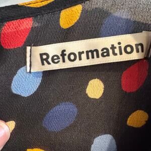 Reformation Polka Dot Mini Dress Black Back Zip Button Short Sleeve Sz 8