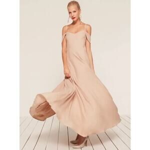 Reformation Poppy Cold Shoulder Sweetheart Neckline Maxi Blush Crepe Dress