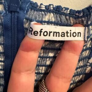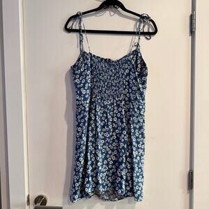 Reformation Presley Mini Dress Blue Floral Tie Strap Smocked Back Zip Sz 12