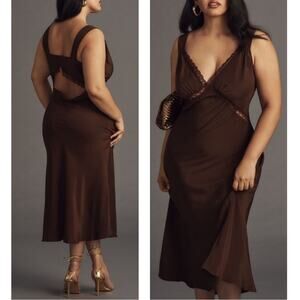 Reformation Provence Lace Trim Silk Cafe Brown Slip Maxi Dress Size 3X