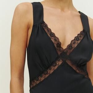 Reformation Provence Silk Lace Cut Out Open Back Midi Maxi Dress Black