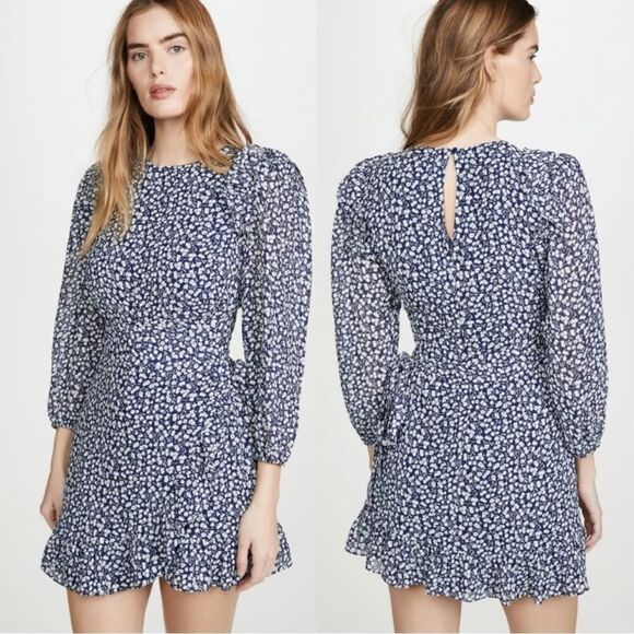 Reformation Quest Mini Blue Dress Soho Print Size 12