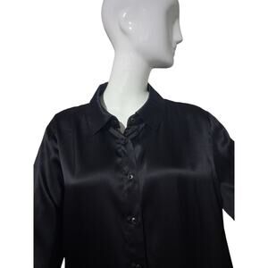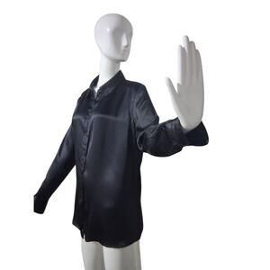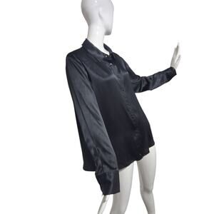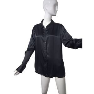 Reformation Quiet Luxury Women's size XL Black 100% Silk Button Up Old Money Top