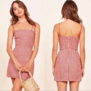 Reformation RED CHECKER LINEN MINI size 6 (fits 4)
