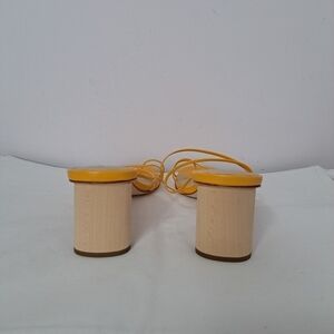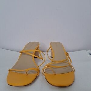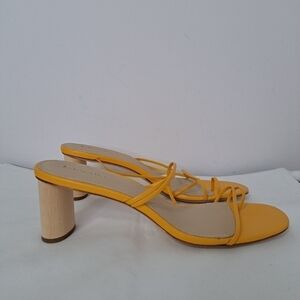 Sleek and classic, but still hot. These heeled sandals feature strap details, a detailed block heel, and a slip-on design.