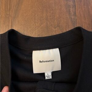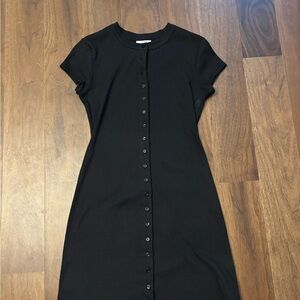 Reformation Raelynn Dress. Knit black button down detail. Size large! Flaw to note; deodorant stain that may come out with dry cleaning. Worn twice.