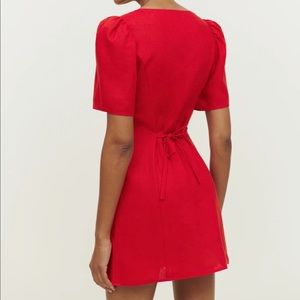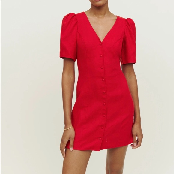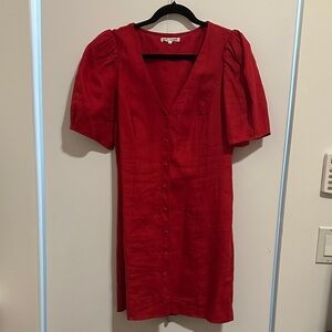 Reformation Red Button-Front V-Neck Mini Dress