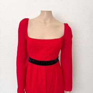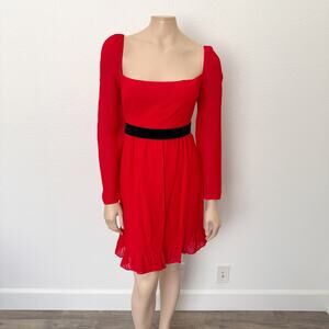 [Reformation] Red Square Neck Long Sleeve Silves Mini Dress NWT Velvet Belt 12