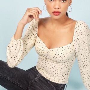 Reformation | Reign White/Black Polka Dot Smocked Back Crop Top Size 6
