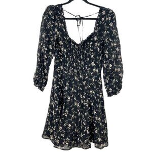 Reformation Remi Mini Dress Floral Black Size 6 Pre-Loved